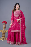 Sharara Fabrics : Heavy Chinon Silk With Heavy Embroidery Sequence Work With Flair