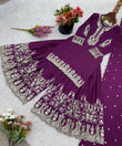 Purple Crepe Silk Sequins Embroidered Palazzo Suit