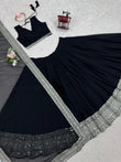 Wedding Function Special Black Color Faux Georgette Semi Stitched Lehenga Choli