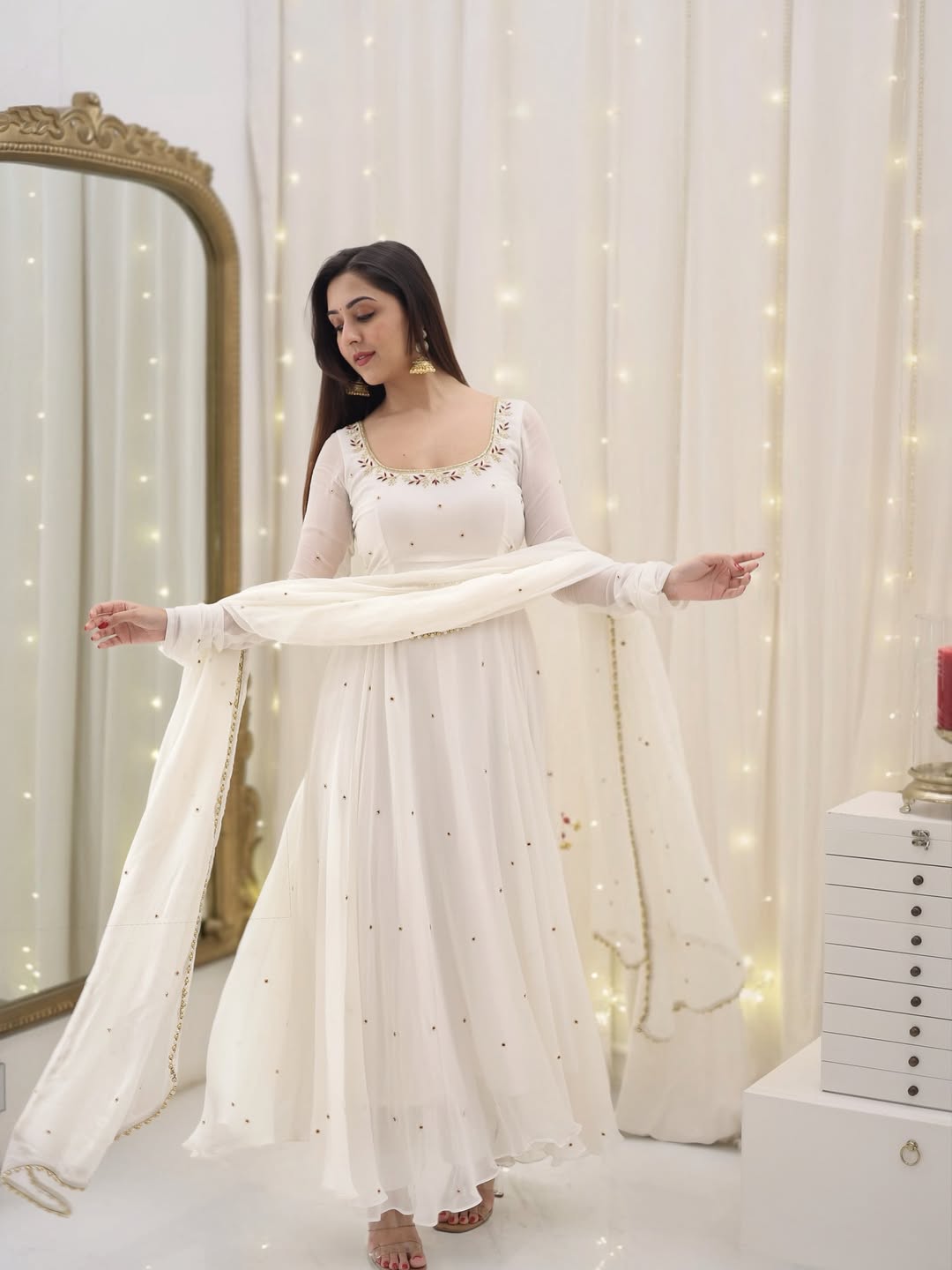 White Color Attractive Party Wear Handwork Fully Flair Anarkali Suit